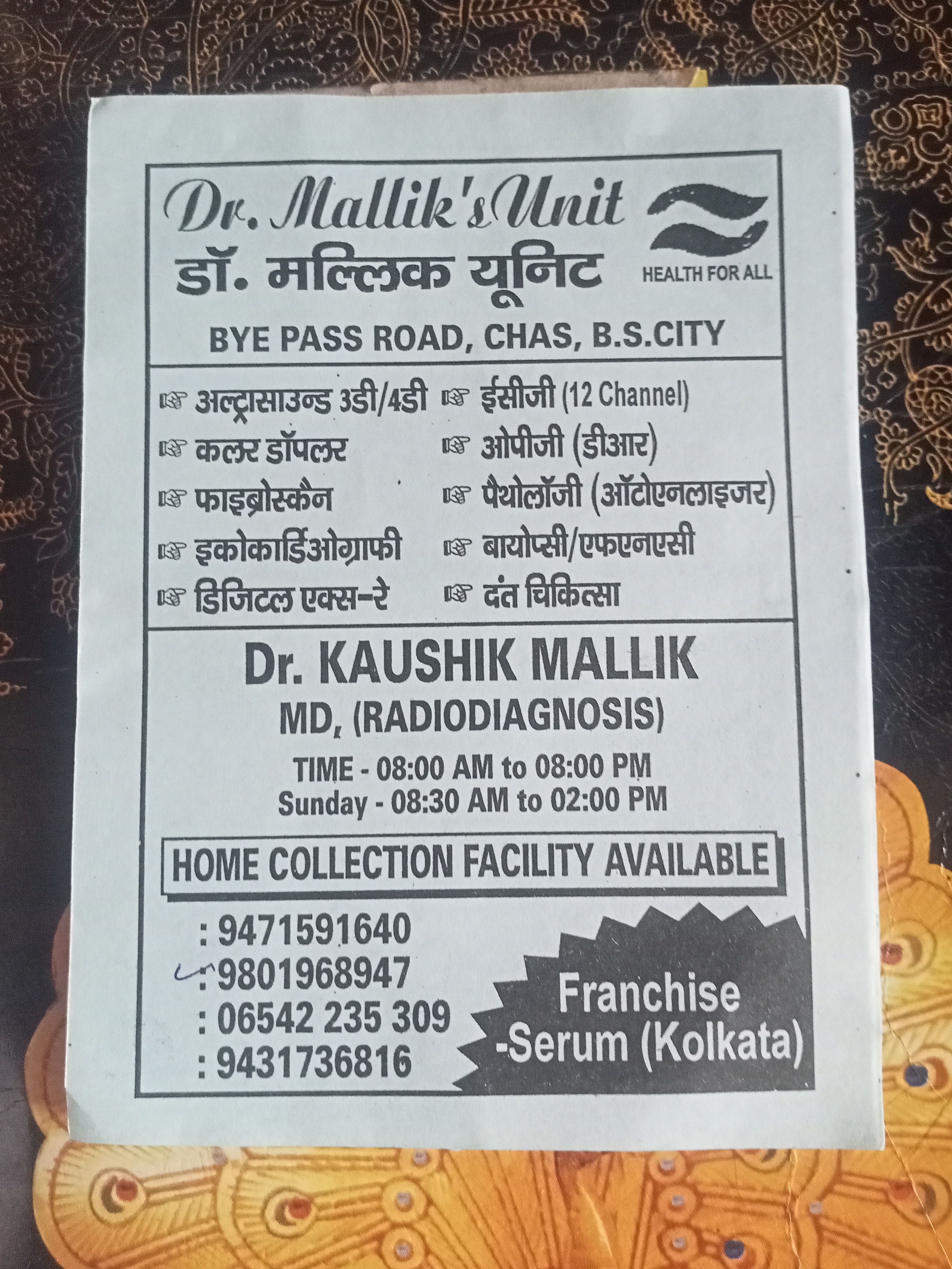 Dr. Mallik’s Unit – A trusted diagnostic centre offering accurate and fast medical testing services including blood tests, X-rays, ultrasounds, ECG, and health checkups. Reliable reports, modern equipment, and expert care under one roof.